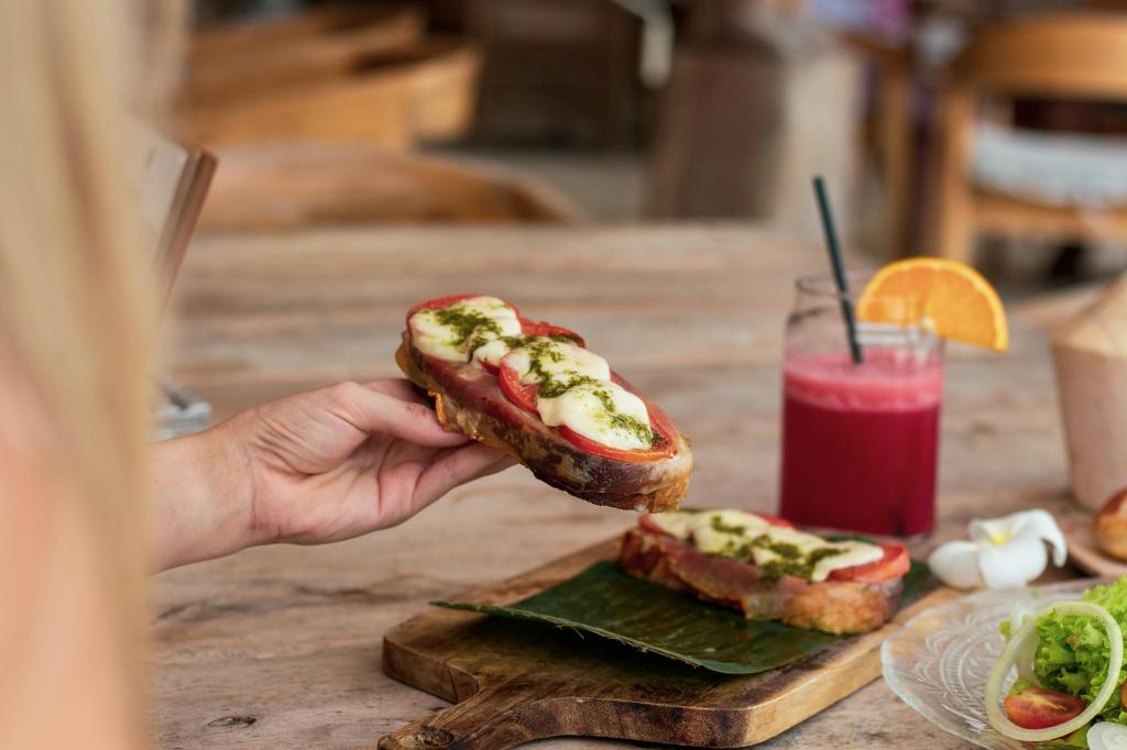 Toast two slices of bread and spread a little pesto on top. Add sliced tomatoes and a fried or boiled egg. It feels fresh, flavorful, and makes a quick light meal.